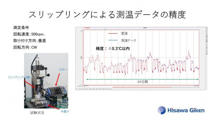転動式スリップリングによる熱電対温度測定の試験データを公開しますので参考にしてください。